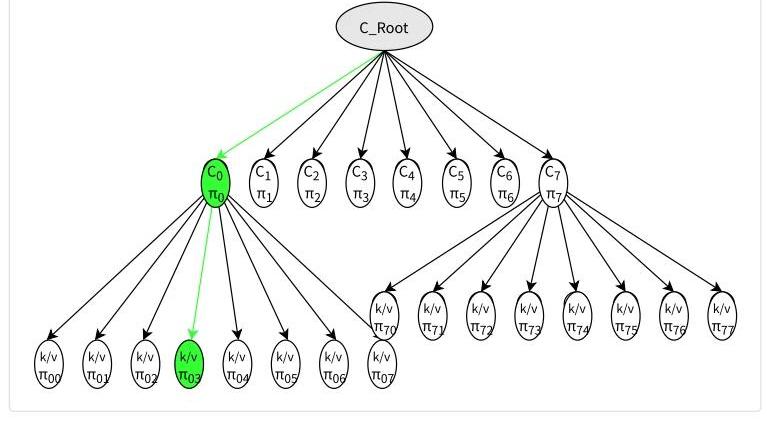 d.所用到的公開信息就是被證明的key/value對,和由下而上的沒層級對應的承諾;