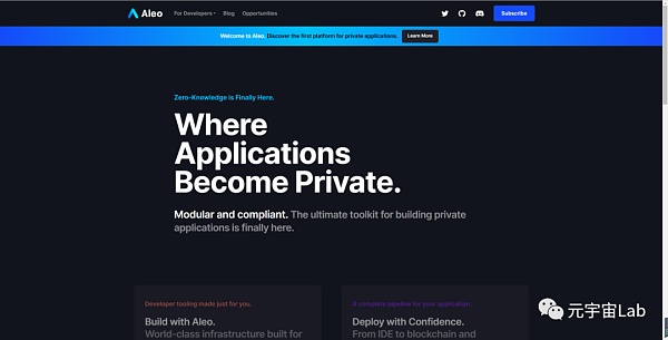 Aleo是第一個完全私有應用程序的平臺。Aleo使用區塊鏈和零知識密碼學來提供應有的新網絡體驗:既是個人的又是私人的。使用Aleo,即使不是區塊鏈或密碼學專家,開發人員也可以編寫私有應用程序。