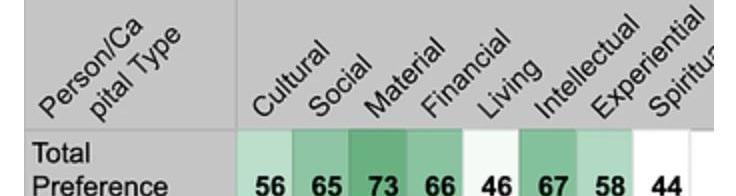 在假設的有效利他主義贈款實驗的數據中發現的一件有趣的事情是,將利用該贈款計劃的社區的偏好映射到多種不同類型的資本中。