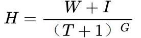 G:衰減權重,隨時間變化內容熱度衰減速度,值越大衰減速度越大,設置為2