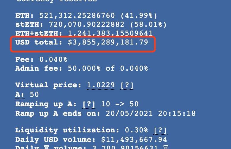 除了使質押的ETH具有流動性之外,Lido還在Curve上建了一個stETH/ETH的交易池子。該池子的流動性目前已經超過38億美元,日交易額約為1150萬美元,這已經是DeFi領域數一數二的大池子了。