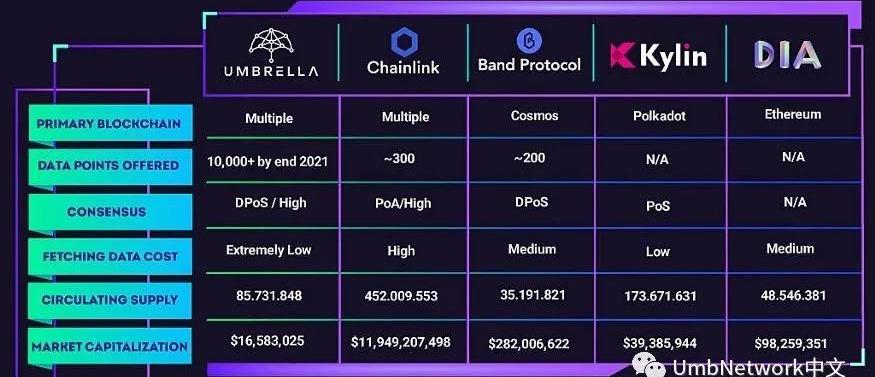 我們選擇的預言機——Chainlink、UmbrellaNetwork、KylinNetwork和DIA協議,都已經準備好了,并得到了不錯的開發團隊的支持,最重要的是——在基本層面上呈現了不同的架構特征,幫助它們中的每一個都起到了襯托的作用。其他。”