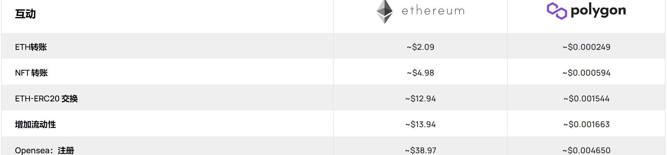 優點:由于以太坊長期處于手續費昂貴的狀態,Polygon給出了良好的方案,解決了用戶的訴求。上面交易手續費比較中,圖片顯示Polygon的交易和轉賬手續費也是相當低廉。每秒可以處理1000~9000筆交易,Polygon聲稱以太坊2.0上線之后,每秒可處理高達65000筆交易。
