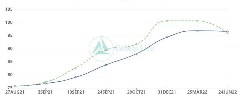 以太坊中短期限IV已經降至上月水平,中遠期期權IV持續了之前的強勢。主要原因是以太坊本月在3200美元橫盤太久,短期賣方活躍,而中遠期趨勢看牛市明顯,持有中遠期虛值期權熱情較高。