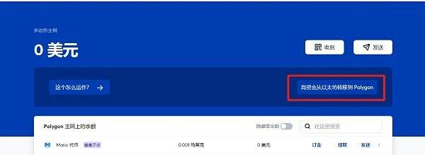 進入網絡錢包后,我們可以看到Matic鏈上的資產。點擊"資產從以太坊向Matic轉移"
