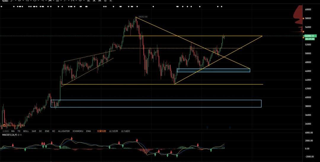 繼上期報告所述,本周比特幣CME缺口位置為49405-50580,昨日下午回補至49500,僅差僅差95美金完全回補;昨晚納指反彈至關鍵位13000一線,如期再度下殺,比特幣雖短暫跟隨,但并無大幅度回調,出現滯跌盤整,且運行于趨勢線上方,因此維持多頭格局。今日10年期美債收益率至1.6%關口受阻下跌,為比特幣上漲提供了預期。