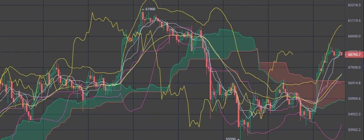 所以今天下午在4小時收線之前我們還是樂觀的看好高空在59000上方任意位置可以考慮空單進場,目標看到58500-58000-57500美金即可。