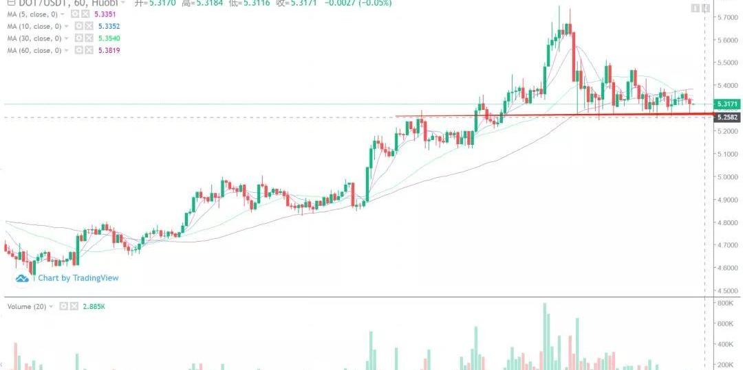 從當前情況來看,5.25是DOT短期的強弱分界線,大概率是會跌破的,走勢形成中樞之后,必有背離的第三筆形成,才能終結走勢。顯然5左右的位置是可以看到的,不用著急。