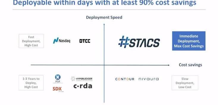 通過STACS,我們為這些金融機構提供了一種通用基礎設施,讓他們能夠實時進行交易,清算,結算和對賬。有了STACS,我們的客戶可以削減高達95%的成本,把交易結算時間縮短到同日內,同時消除失誤和交易失敗的可能。