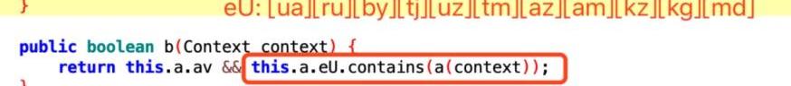 惡意樣本在解密釋放新的dex文件后判斷當前感染者所在國是否在白名單中,如果在白名單中則不執行惡意行為。