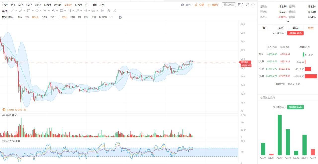 BCH短時釋放的量能相對前期要明顯一些,資金流大單和小單存在明顯分歧,以小單看多為主,RSI回落到中間地帶,等待BTC的方向選擇。