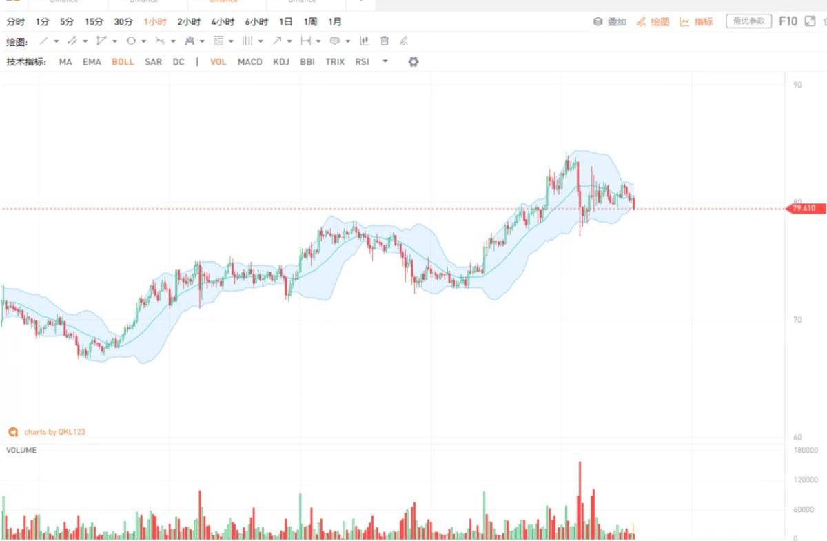 與ETH類似,LTC在高位放量明顯,目前來到80美元附近震蕩,短時區間震蕩為主。