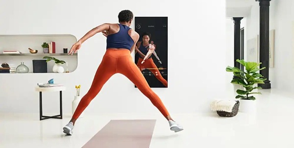Mirror被稱為全球首個提供“隱形式”家庭健身解決方案公司,其推出配備嵌入式攝像頭和揚聲器的健身鏡,開機后成為一臺交互式的鏡面顯示器,支持健身教練“面對面”指導體式,以及隨時反饋用戶的運動狀態,如查看消耗卡路里等相關數據。FITURE,另一款健身“魔鏡”,結合高精密AI傳感器捕捉用戶的運動軌跡,確保訓練動作的規范,智能識別糾錯指導,還可系統預約教練的一對一服務。更多全息數字化的健身體驗正在被探索。