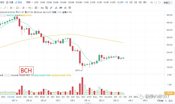 從EOS、BCH、LTC等主流幣日線圖看,3月28日的一根陰線,使得市場前期反彈走勢,暫時休息。市場整體氛圍也開始轉為偏弱震蕩,開始受制于MA7均線壓制,后面就是關注回落程度。主流幣最近行情,還是聯動大餅,無獨立行情。