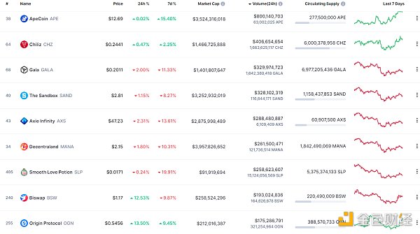 NFT總市值、市值排名前十項目 數據來源:coinmarketcap