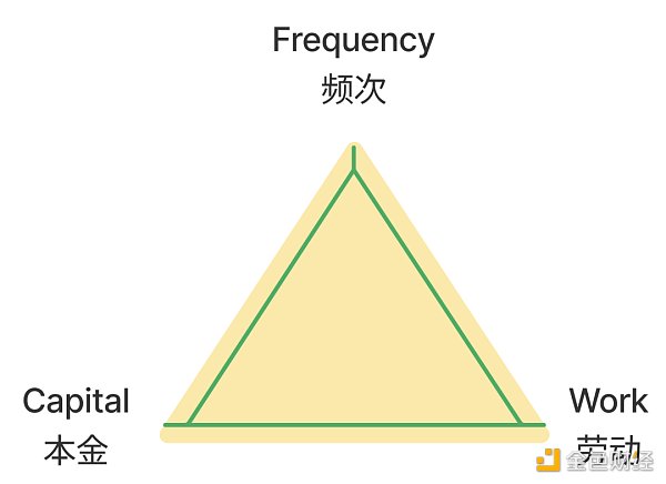 勞動(work):參與者在本金以外,需付出的汗水。舉例:體力、知識、決策、和創作等重復發生的勞動價值。需要明確,高頻次的勞動往往是標準化的,門檻較低或者可以機械化的;低頻次的勞動往往是個性化的,需要專業知識技能。