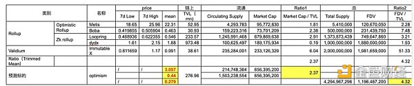 3.5.1 Value/TVL 下圖選取的更多的是 L2 而非主流 L1(畢竟 TVL 一層和二層差距還是比較大);取了 trimmed mean 來算 ratio1 和 2,進而類比反推