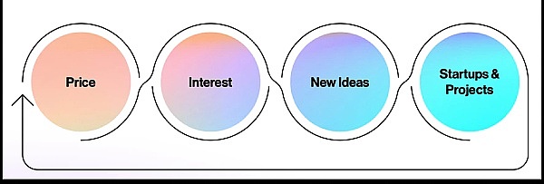 他們稱之為“加密價格-創新周期”。在每個周期中,即使在價格下跌之后,仍然有更多的開發人員和初創公司留在加密生態系統中,而不是回到周期開始之前的行業。