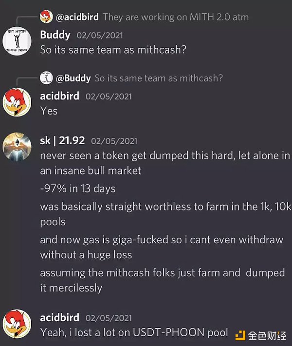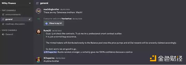 8 月,一個「匿名團隊」創建了 Yearn Finance 的分叉項目 Wifey Finance,?麻吉大哥、Leo Cheng 和 Wilson Huang 都恰好是 Wifey Discord 頻道的第一批成員。TTransaction 記錄顯示,Wifey 的部署者多次向 Wilson Huang 匯款。四天后,Wifey Finance 被拋棄。