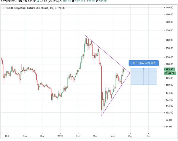 ETH也走出了三角形型態。雖然這同時可能意味著后續會上升或者下降,我只想再強調一下,ETH的價格跟上周五相比已經上漲了25%