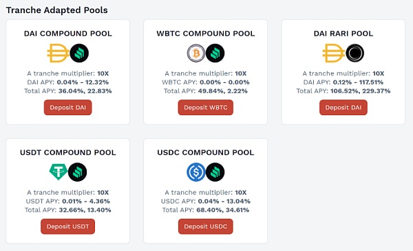 兩個存款池都被借用于產生收益的協議,例如Compound和Rari Protocol。如果出現漏洞或導致資金損失等缺口情況時,這兩個部分中的每一個都將承擔不同的風險。如果任何資金丟失,A 檔的存款人將在S級之前失去他們的資金,從而降低S的信貸風險。作為交換,A級將獲得比S級多10倍的利息。