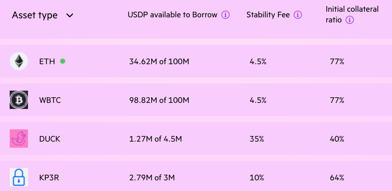 與MakerDAO的可變穩定率和清算率不同,Unit使用固定的穩定率和清算費。雖然固定費率為借款人提供了一個可預測的來源,以應對其相關抵押品不可預測的價格行動,但缺乏可變穩定費率會使USDP面臨掛鉤風險。如果沒有這個工具,USDP維持其掛鉤的主要方式則是利用其在Curve和Component.finance上池中的其他穩定幣的穩定性,從而導致圍繞USDP的一系列風險。這些風險將在本篇文章的后部分介紹。