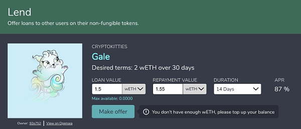 可以將任何ERC-721代幣作抵押,然后可以獲得接近市場認可的價格的貸款,而不是像超額抵押那樣,從而獲得更充足的流動性。