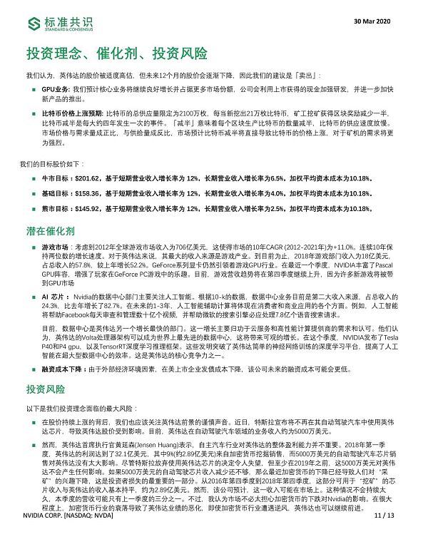 1. 我們相信英偉達業務將繼續增長。其 GPU 業務仍將主導游戲行業市場,其數據中心業務將保持目前的高速增長。隨著人工智能和自動駕駛技術的發展,其 Tegra 處理器業務將適度擴張。