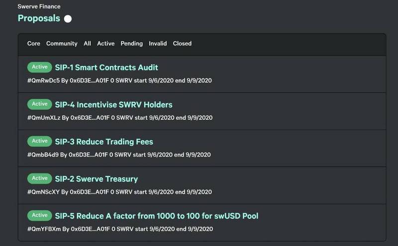 用戶持有的代幣數量很重要,因為這個數量相當于創建提案(需要 2500 veSWRV)進行投票和表決的能力。目前已經有 5 個提案正在討論中: