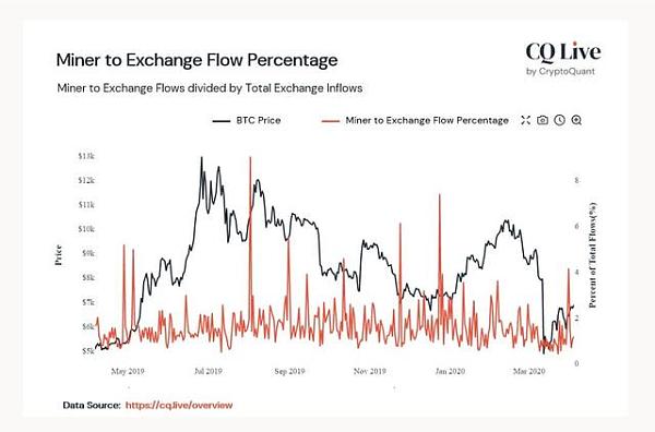 礦工占交易所流量百分比。資料來源:CryptoQuant
