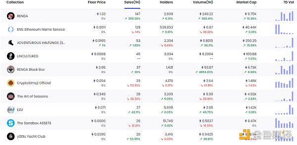 24小時內銷售漲幅前十的NFT 數據來源:NFTGO