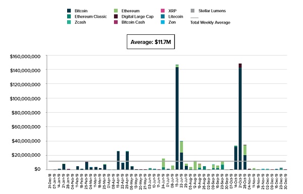 除了比特幣信托外的累計每周投資- 2019年第4季度