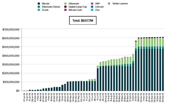 以下為Grayscale2019年度投資報告,通過該報告,我們可以一覽灰度在2019年加密市場的資金流向情況: