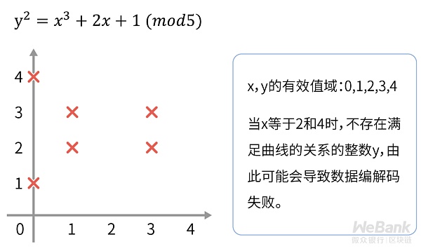 然而,密碼橢圓曲線是定義在有限域上的,即曲線上是一個離散的點集合。這樣會導致計算完全平方數不一定存在,即x沒有對應的y在橢圓曲線上,那么,部分明文數據無法轉換到橢圓曲線上的點,從而導致部分數據無法被直接加密。