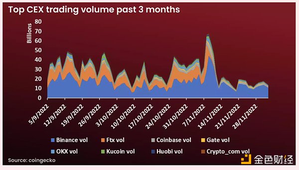 這里將在 CoinGecko 上具有高交易量的中心化交易平臺定義為頭部 CEX。