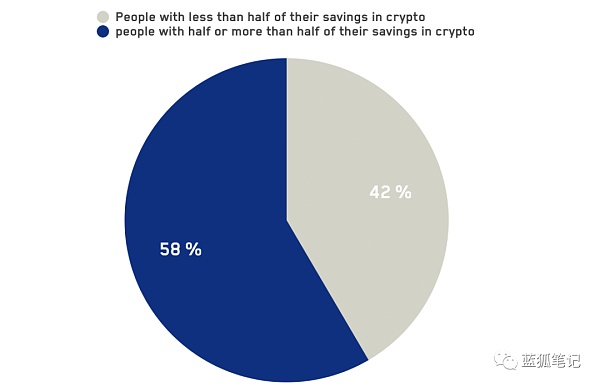 考慮到數字資產的波動性和資產類別的不成熟性,DeFi用戶平均持有其在加密資產全部儲蓄的54%。