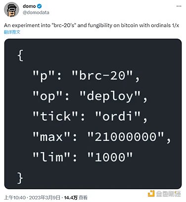 在 3 月 9 日,他非正式的提出了比特幣“brc-20 ”和可替代性實驗。在這個邏輯下,任何人都可以使用序號銘文進行部署、鑄造或轉移。與其他類似項目一樣,適用“先到先得”的規則。