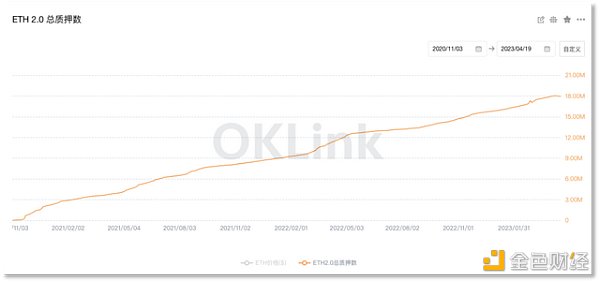 從近期的數據來看,單日凈流入的ETH數量已經開始顯著高于提款數。4月19日,協議約有2.08萬ETH被提出,但同時有10.53萬 ETH被質押進去。當前,ETH質押總量約為1736萬個,大概有72.1萬個ETH在排隊提取中。