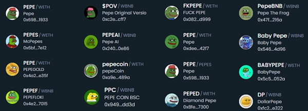 就這樣佩佩蛙社區不斷壯大,現今發展如何大家有目共睹,不多做描述。佩佩蛙的火熱也炸出了一群“蛙”友,關于青蛙概念的Token多達上萬種,web3圈子可謂是聽取pepe聲一片。