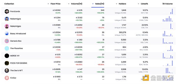 24小時內銷售前十的NFT 數據來源:NFTGO