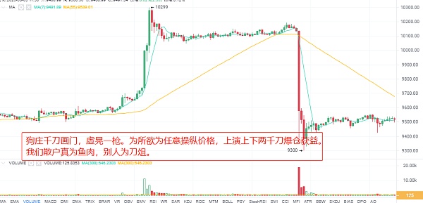 茍莊千刀畫門,虛晃一槍。為所欲為任意操縱價格,上下兩千點爆倉獲益。我們散戶真為魚肉,別人為刀俎。