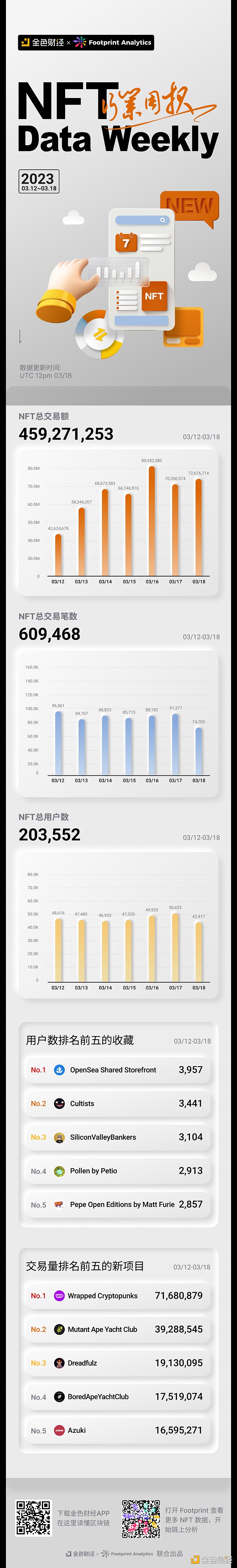 4、上周用戶數排名前五的收藏:Opensea、Cultists、SiliconValleyBankers、Pollen by Peito、Pepe Open Editions by Matt Furie