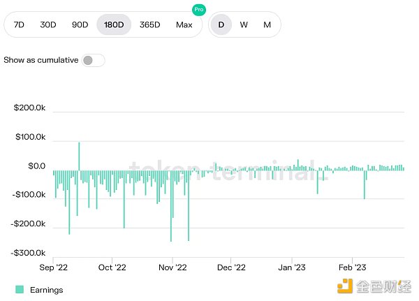 如果我們看下圖,Aave 在過去 6 個月中成功地保持了每天約 2 萬美元的平均收入。