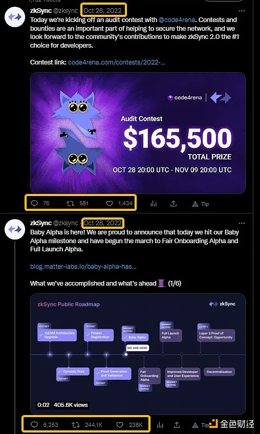 @zksync同一天發布的其他推文的參與度比產品發布的推文低 200 倍。