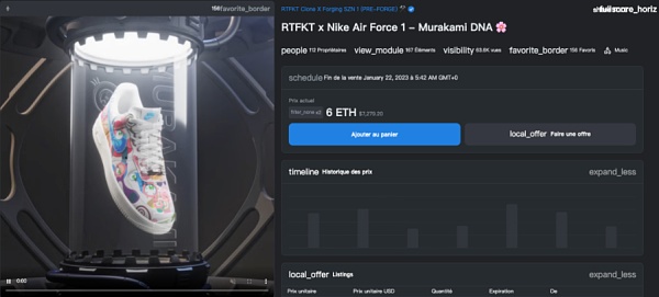 2022年4月23日,Nike收購的RTFKT官方推出名為“MNLTH”的神秘盒子,隱藏其中的「RTFKT x Nike Dunk Genesis CryptoKicks」鞋款終于正式出現在人們視線當中。根據鞋款配色皮膚瓶的稀有程度,最為稀有的「ALIEN」配色最新成交價高達150ETH,約合18萬美金。隨著OpenSea上該系列的相關單品交易次數持續攀升,越來越多的人開始進入到這個NFT項目中來,購買了此次NFT的人們也開始在社交平臺曬出自己的1OF1定制。