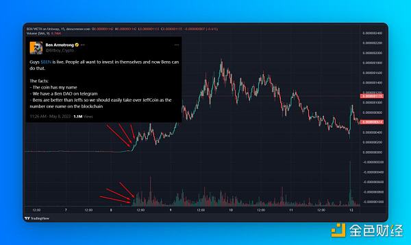 最初,BEN代幣并不受歡迎,但如何才能讓它變得受歡迎呢?答案是:需要一個擁有更有影響力和更大受眾群的網紅。很快,另一個“網紅”Ben Armstrong(@Bitboy_Crypto)浮出水面,他告訴Ben.eth自己愿意提供幫助并開始在推文中推廣“BEN”代幣。