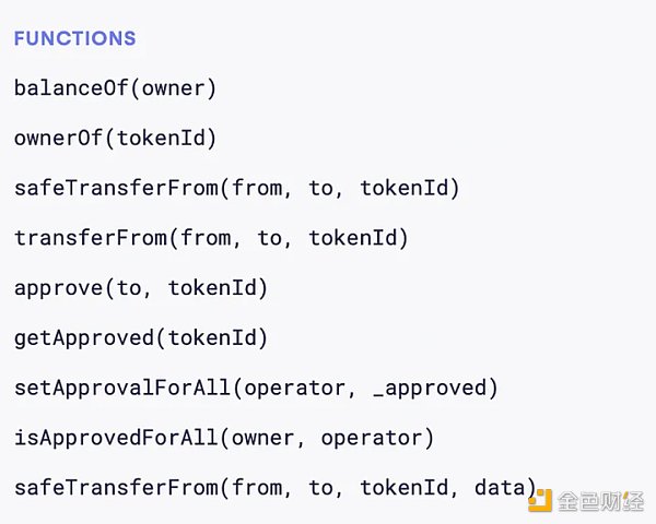 當我們討論 NFT 時,通常情況是指在 2018 年正式創建的 ERC-721 標準。ERC-721 標準是 NFT 的基礎接口,聲明每個實現 ERC-721 智能合約必須支持的一些功能。(對于沒有 Solidity 背景的用戶而言,它是一種藍圖,用于定義如何與合約/類別交互,特指函數但不屬于實現)。