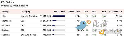 幣安和 Coinbase 通過與 Lido 提供的產品相比極具競爭力的產品,控制了信標鏈上所有 ETH 的 15.3%。