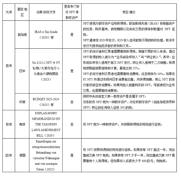 3 比較視角下的全球 NFT 稅收政策