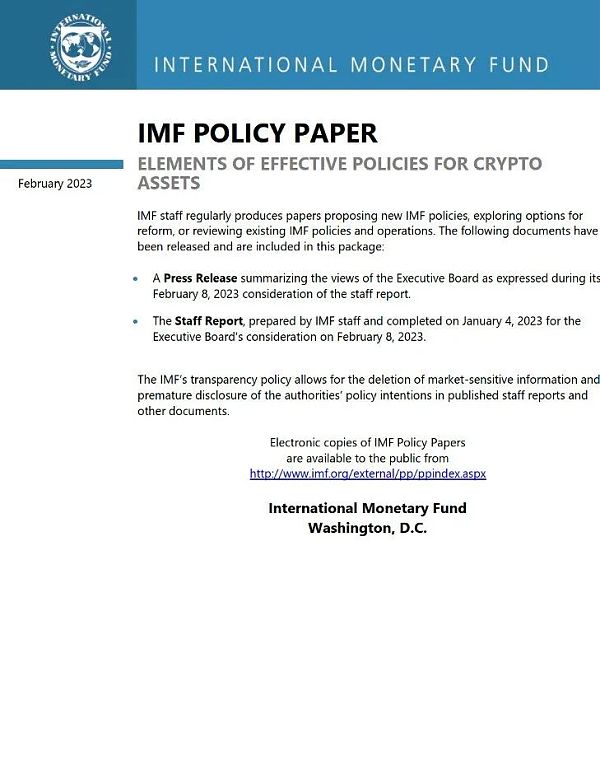 近日,國際貨幣基金組織(IMF)執行董事會討論了一份關于有效加密資產政策的董事會文件,本文為會議上IMF關于加密資產政策的有效性的一份報告《加密資產的有效政策要素》(Elements of Effective Policies for Crypto Assets) 。報告總結了有效政策框架的九個核心要素,通過采用該框架,政策制定者可以更好地減輕加密資產帶來的風險,同時利用與之相關的技術創新的潛在好處幫助成員國建立一個全面、一致和協調的加密資產框架。中國人民大學金融科技研究所(微信ID:ruc_fintech)對研究核心部分進行了編譯。